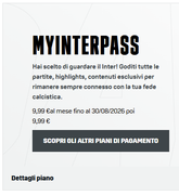Sai che invece sto pensando di fare il contrario? Passare al full a 20€ e poi dare disdetta dopo un mese...spunta di continuo, magari non subito, ma pirrma o poi spunta... il loro obiettivo è agganciarti coi 9,99 euro per la sola tua squadra e poi tentarti a spendere il doppio...