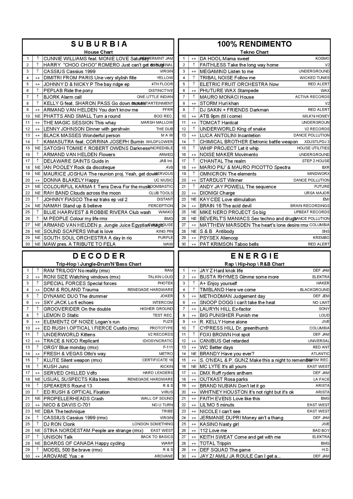Lato B di un'audiocassetta di musica Techno e Dance registrata il 05 Settembre 1998 da "100% Rendimento"(Radio Italia Network)