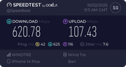 Da qualche giorno ho installato la Fibra Aruba con Pianeta Fibra, da cellulare ho dei buoni livelli sia in download che upload, un po' alto il ping...
